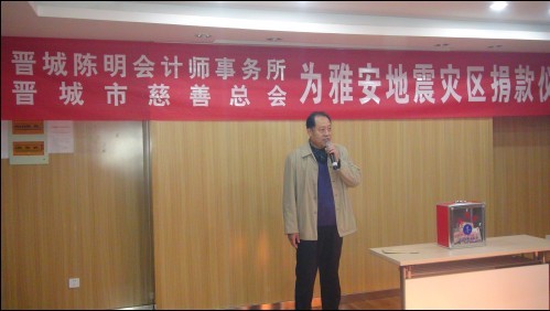 2013年4月28日下午三時(shí),陳明集團(tuán)會(huì)議室里愛意濃濃,正在舉行為雅安地震捐款獻(xiàn)愛心活動(dòng),此次捐款活動(dòng)我們有幸請到了晉城市慈善總會(huì)陳副會(huì)長光臨并作了重要講話,表示一定將陳明集團(tuán)全體員工的愛心送到雅安同胞手上。
